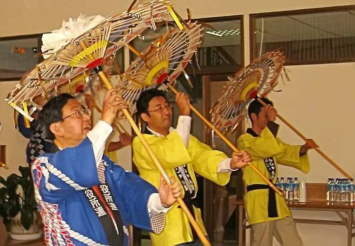 - «Сян-сян» - традиционный японский танец с зонтами. Сейчас в Японии жарко, 35 градусов, поэтому люди носят с собой зонты, чтобы укрыться от жары. Этот национальный танец – что-то вроде призывания дождя. Его исполняли участники недавнего фестиваля в Тоттори, а мы решили показать вам фрагмент танца, ведь это интереснее, чем просто смотреть слайды, - пояснил модератор презентации.