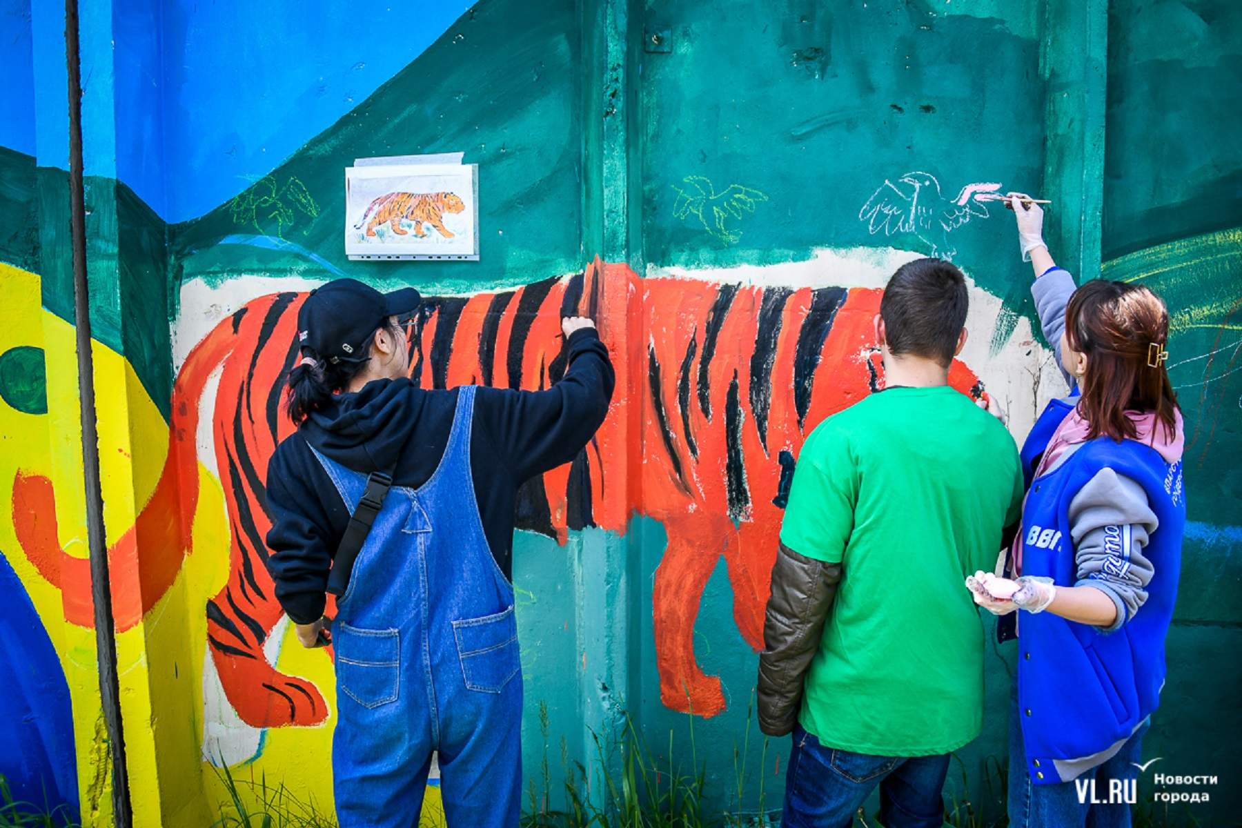Студенты ВВГУ вместе с воспитанниками детских домов Владивостока претворили в жизнь социальный проект Сбербанка «Рисуем вместе». Красочные рисунки появились на подпорной стене на улице Калинина. Теперь на проходящих мимо горожан смотрят тигры, пеликаны и ларги.