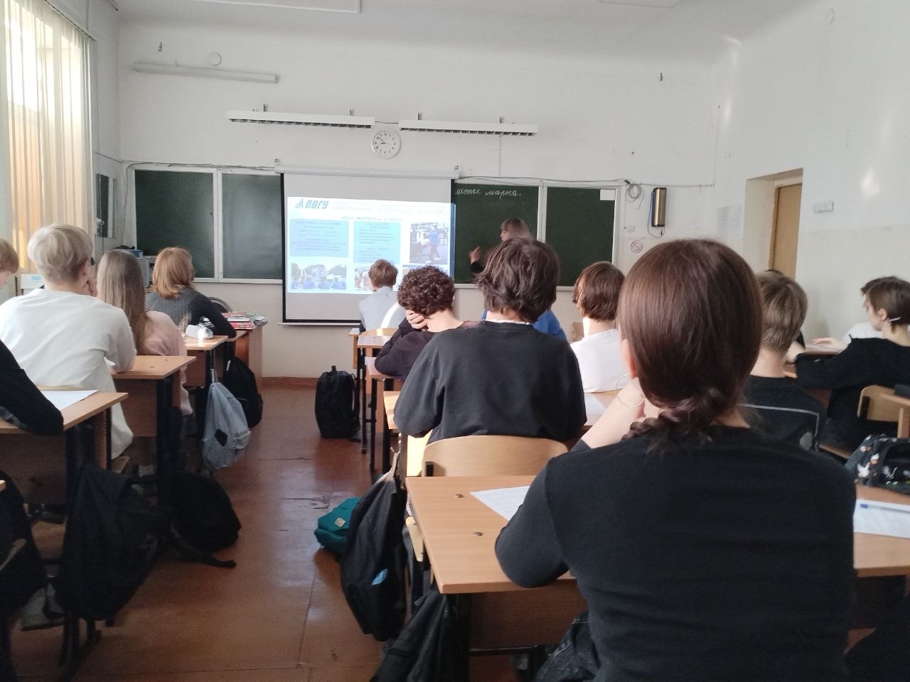 Встреча прошла в формате живого диалога. Школьники задавали вопросы о проходных баллах, возможностях совмещения учебы с практикой и дальнейшем карьерном росте.
